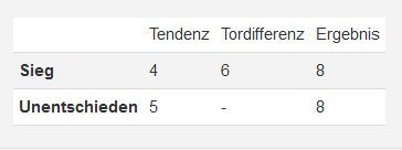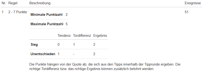 Wir tippen nach der Quotenregel: je mehr Tipper auf das gleiche Ergebnis tippen, desto weniger Punkte gibt es für diesen Tipp. Umgekehrt werden so Außenseiter-Tipps, zB das oft riskantere Unentschieden, belohnt. Mit eurem Tipp beeinflusst ihr also die Quoten, somit die Punkteveteilung. Wenn ihr wollt: je später ihr tippt, wenn evtl. viele Tipps schon abgegeben sind. Kleiner Zockerfaktor. Welche Punkte dann aktuell verteilt werden, findet ihr in der Tippübersicht unter dem Reiter "Punkteregel". ZB 2-5-5 o. Ä. Die richtige Tordifferenz, auch bei Unentschieden, gibt +1, das richtige Ergebnis +2 - obendrauf.